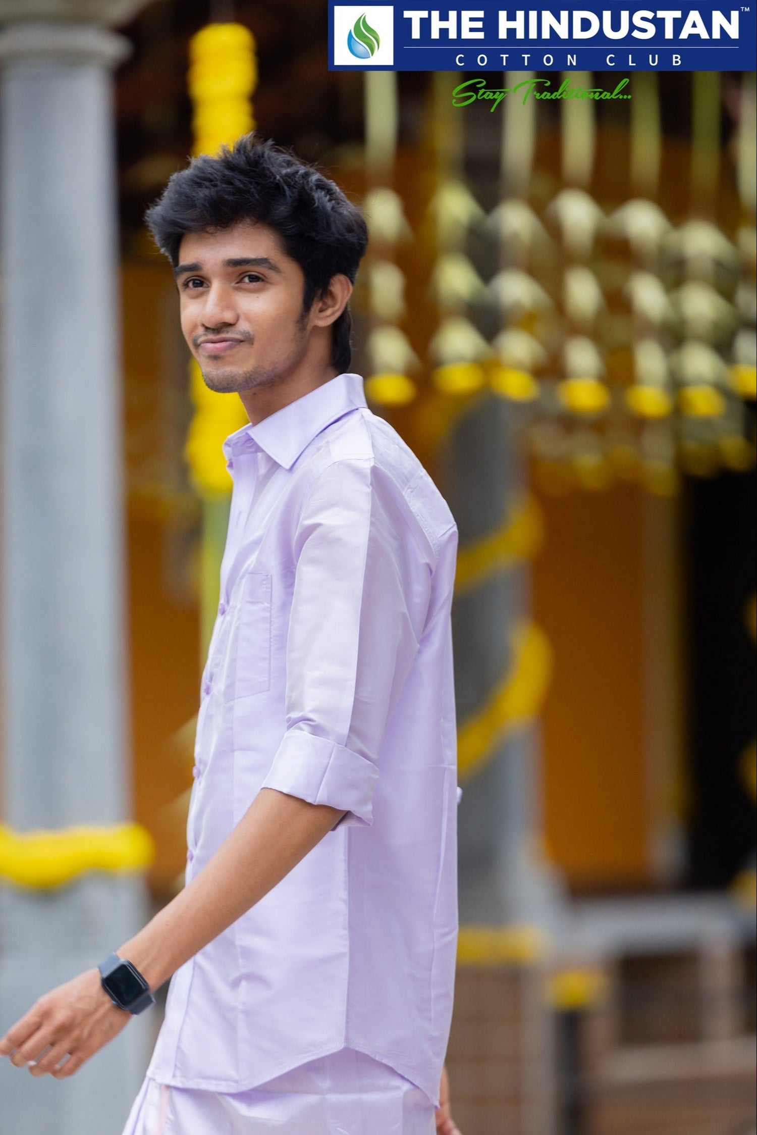 Artsilk Ultra Violet Shirt + Purple Dhoti with 100k Copper Border - Full Sleeve