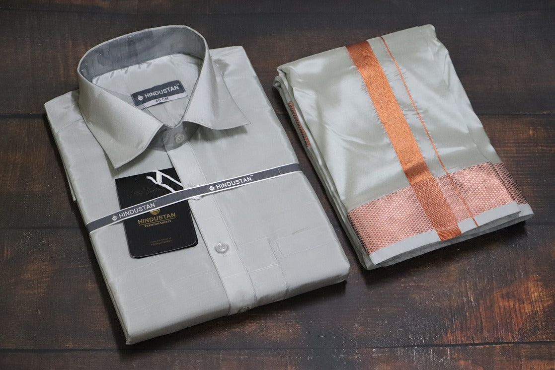 Artsilk Copper Combo Set(Shirt Fabric+Dhoti) with 50k Copper Border